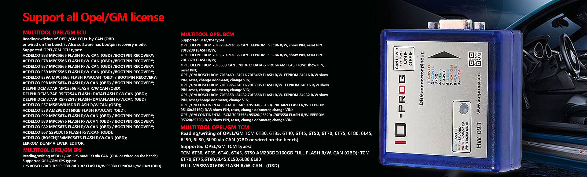 IO-prog ECU Programmer ChipTuning Support Opel/GM ECU,Bcm,Tcm,Eps,OBD/BENCH